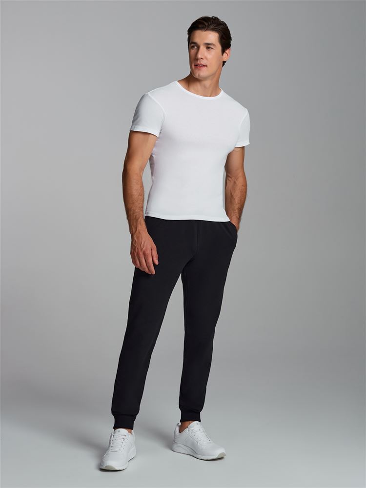Брюки мужские из хлопкового трикотажного полотна на манжетах из рибаны. Карманы выполнены в боковых швах без молний. Пояс по талии регулируется шнурком.