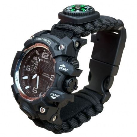 Часы имеют защиту от влаги. Это значит, что даже если вы попадете под сильный дождь, часы не выйдут из строя. В качестве браслета для этого аксессуара предусмотрен паракорд. Это длинная веревка, которую можно использовать для выживания в экстремальных, полевых условиях или в повседневной жизни.