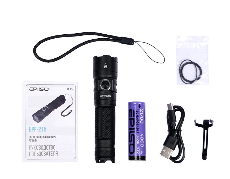 Главными характеристиками этого фонаря являются его компактность, герметичность, прочный корпус и дальность светового потока. Кроме того, EPILSO EPF-215 предлагает различные режимы работы, позволяя выбрать подходящий режим в зависимости от ситуации. Используется светодиод CREE XHP50.2 20W. Максимальная яркость фонаря составляет 4000 Люмен. Дальность свечения до 160 метров.