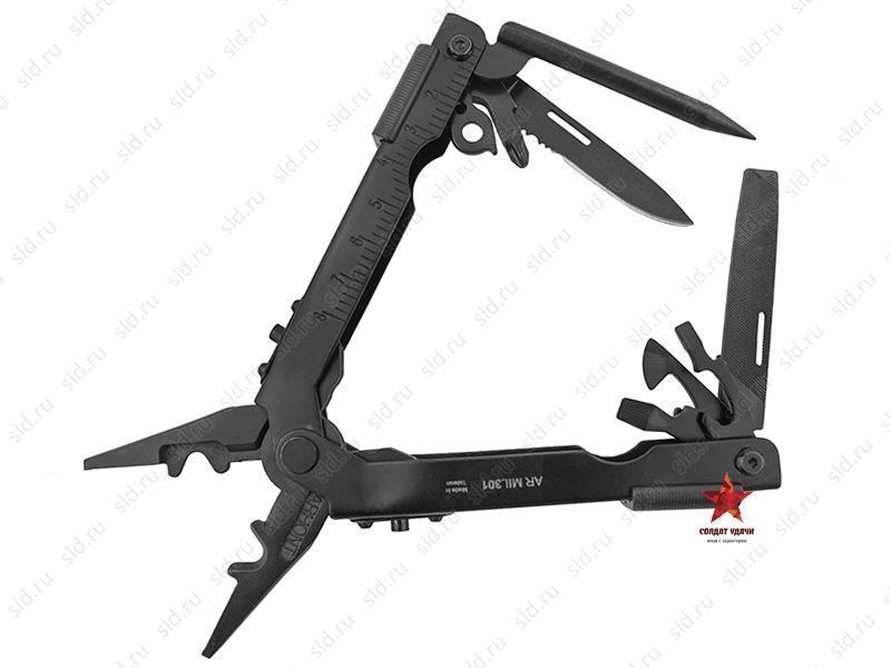 На изготовление мультитула пошла нержавеющая сталь 3Cr, которую дополнительно защищает специальное черное покрытие.