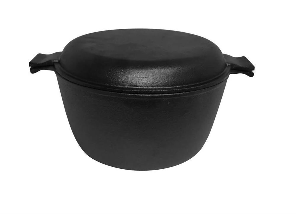 Кастрюля чугунная с термопокрытием, с крышкой-сковородой диаметр 20 см