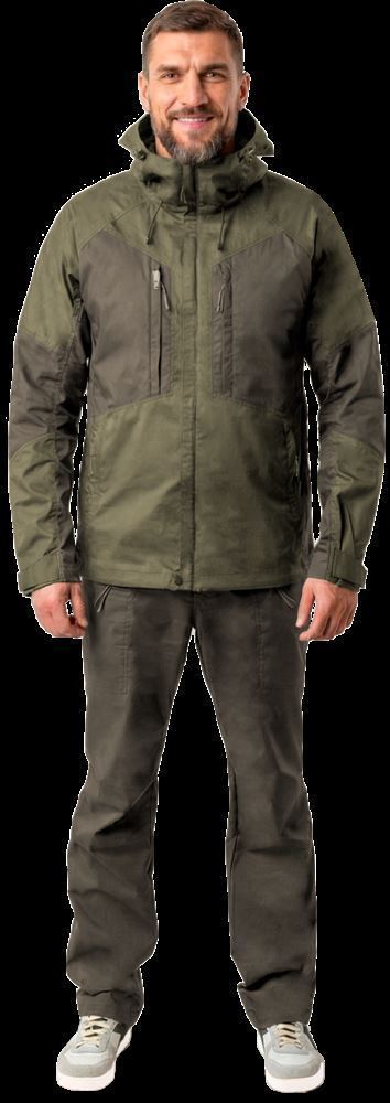 Костюм в минималистичном скандинавском дизайне разработан для треккинга и активного отдыха в жаркую погоду. В производстве костюма применяется легкая и в тоже время прочная ткань DRIVE с плетением Micro Rip-Stop и дополнительной влагозащитной WR-обработкой. Высокое содержание хлопка в ткани обеспечивает обладателю костюма гигиеничность и комфортный микроклимат. В составе основной ткани также присутствует спандекс, придающий ткани эластичность. Для максимального удобства на куртке и брюках добавлены вставки из эластичного дышащего нейлона.