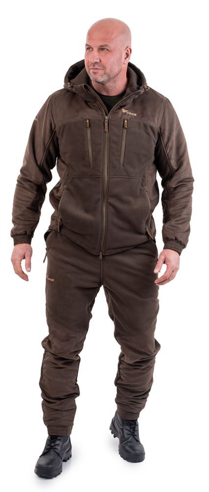 Флисовый костюм Yakut (Якут) выполнен из плотного флиса с усилениями из искусственной замши в местах повышенного износа. Флисовый костюм можно использовать как эффективный утепляющий слой под мембранную одежду для очень холодной погоды, а также применять как самостоятельное изделие в прохладную безветренную погоду. За счет комфортности материала костюм Yakut будет оптимальным выбором для отдыха в перерывах между охотой. Температурный режим -5+15