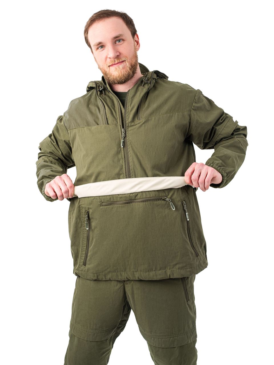 Состоит из куртки типа «анорак» с капюшоном и брюк прямого кроя. Костюм оснащен специальными ловушками для клещей, внутри куртки предусмотрен дополнительный слой хлопковой трикотажной ткани, которая заправляется в брюки для максимальной защиты от проникновения внутрь изделия. Низ куртки регулируется для дополнительного комфорта. Рукава оснащены плотными трикотажными манжетами. Капюшон с отстегивающейся противомоскитной сеткой, которая компактно укладывается в карман на груди. На куртке большой карман-кунгуру с 2-мя входами на молнии и влагозащитный карман под клапаном. Эластичный пояс со шлевками и внутренней резинкой гарантирует идеальную посадку. Низ брюк собран на резинку, что обеспечивает дополнительный комфорт во время движения. Два боковых кармана без застежки дополняют функциональность модели. Внутренние манжеты на штрипках позволяют заправлять брюки в ботинки для максимальной защиты. Этот костюм отлично подойдет для всех, кто часто и долго бывает в лесу. Для обеспечения безопасности в темное время суток вся печать на изделии является светоотражающей, а также имеются светоотражающие канты.