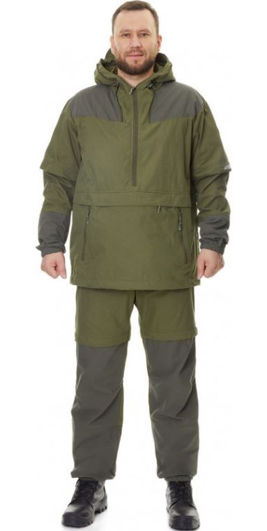 Костюм оснащен специальными ловушками для клещей, внутри куртки предусмотрен дополнительный слой хлопковой трикотажной ткани, которая заправляется в брюки для максимальной защиты от проникновения внутрь изделия. Рукава оснащены плотными трикотажными манжетами. На капюшоне предусмотрена молния для противомоскитной сетки, которая компактно укладывается в карман на груди. В передней части куртки предусмотрен объемный передний влагозащитный карман и два боковых. Этот костюм отлично подойдет для всех, кто часто и долго бывает в лесу. Для обеспечения безопасности в темное время суток вся печать на изделии является светоотражающей.