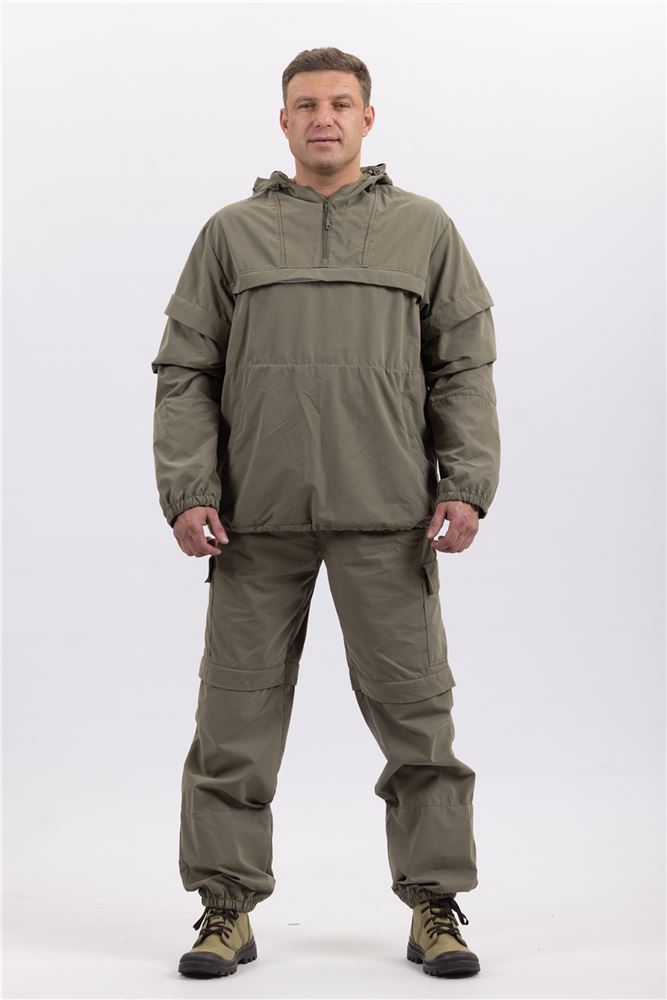 Противоэнцефалитный костюм состоит из куртки типа «анорак» с капюшоном и брюк прямого кроя.