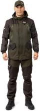 Застежка на двухзамковую молнию обеспечит легкий доступ к карманам брюк. Двойная ветрозащитная планка на потайных кнопках надежно защитит от ветра и дождя. Рукава анатомического кроя, манжеты на резинке. Капюшон не отстегивается, с утяжками по объему головы и овалу лица.