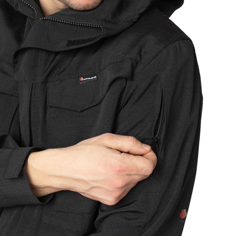 Карманы: 2 нагрудных кармана с клапаном и застёжкой на контактную ленту, 2 нижних двойных накладных кармана с вертикальными и горизонтальными входами с клапанами на контактной ленте. На плечах 2 кармана в швах на молнии. Внутренний накладной карман на молнии.