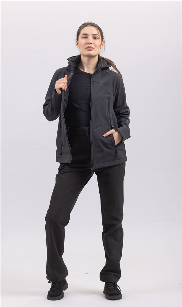 Куртка «Рейнджер» изготовлена из современного трехслойного материала Soft shell. Первый слой 94% полиэстер и 6% спандекс. Второй слой – мембрана с показателями: водный столб 10000 мм, пароотвод 10000 г/м2/24 часа. Третий слой – 100% полиэстер.