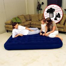 Изготовлен из прочного водонепроницаемого винила, сверху покрыт мягким флокированным слоем, напоминающим велюр, который не позволяет соскальзывать постельному белью. Накачивается с помощью ручного, ножного или электрического насоса (приобретается отдельно). Клапан с универсальными переходниками позволяет подключать разные типы насосов