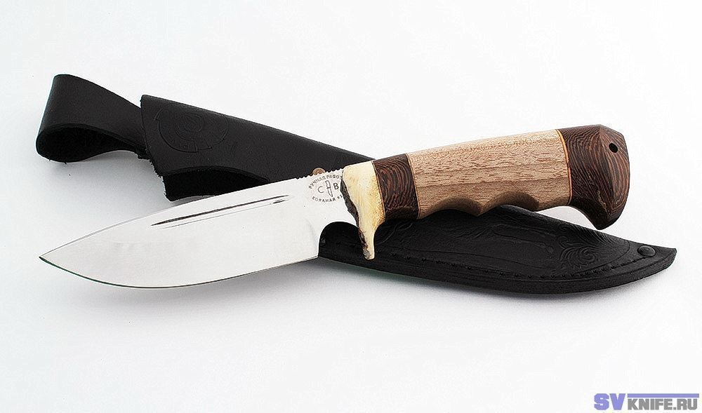 Нож комплектуется ножнами из натуральной кожи и сертификатом.