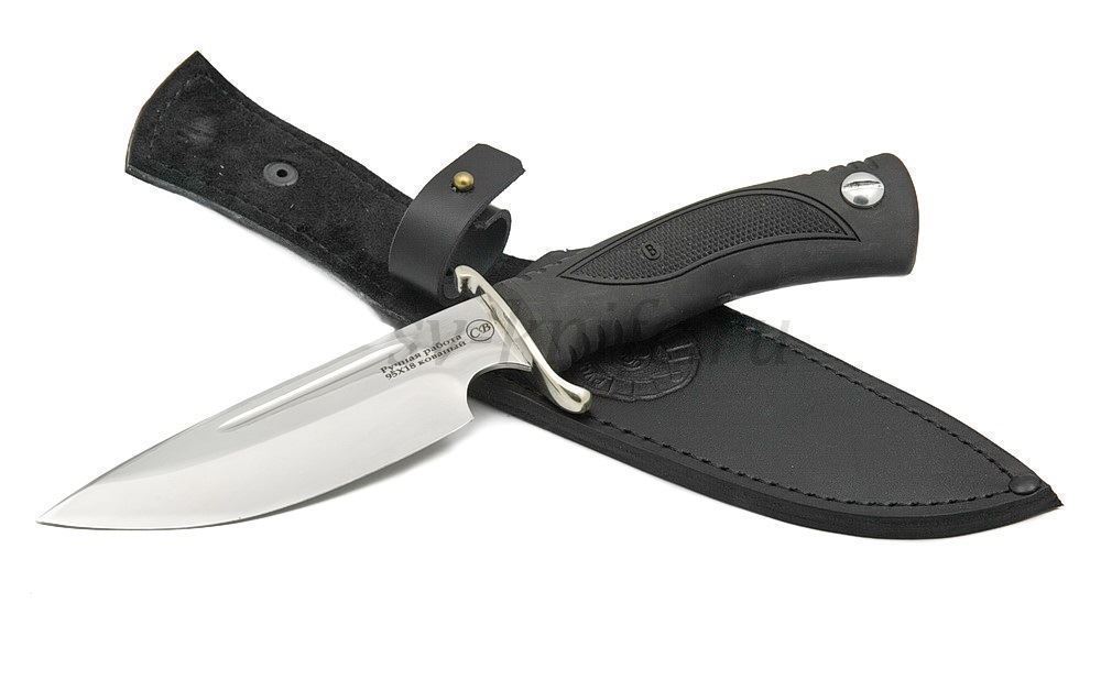Нож комплектуется ножнами из натуральной кожи и сертификатом.