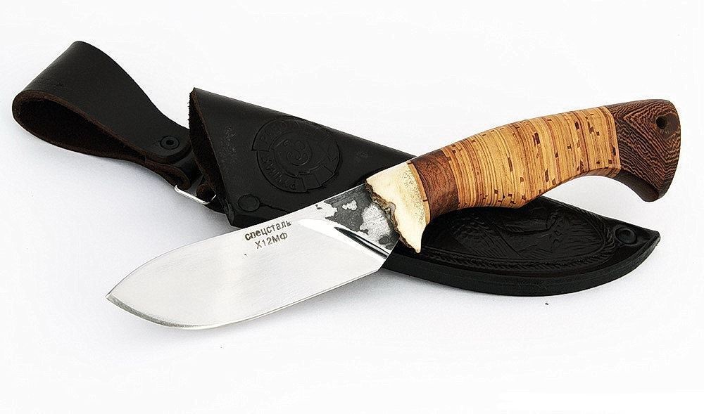 Нож комплектуется ножнами из натуральной кожи и сертификатом.