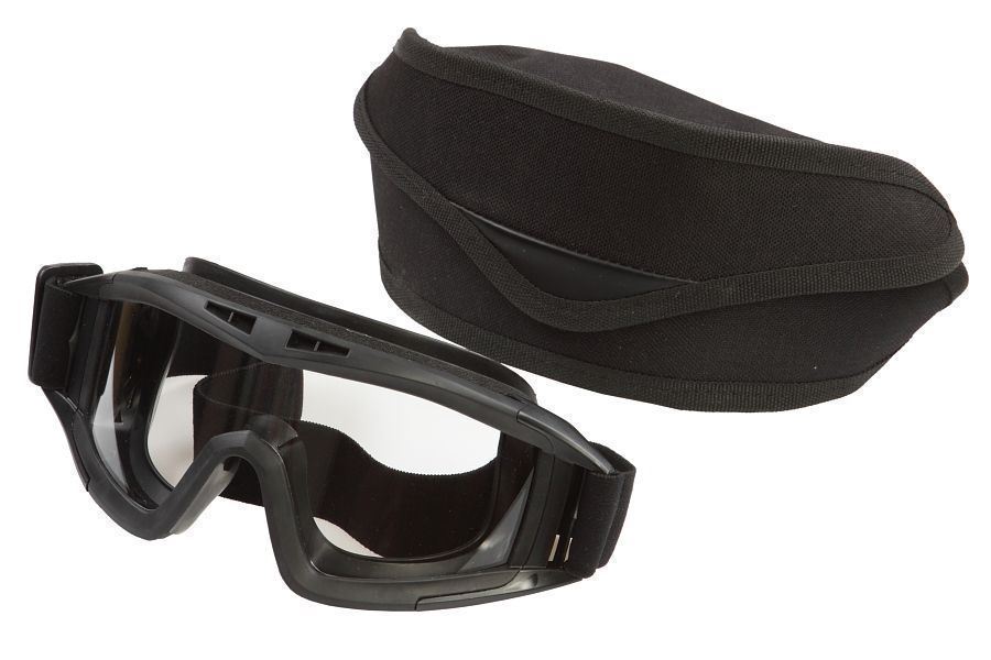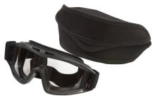 Прозрачные защитные очки с поликарбонатными стёклами. Оправа – чёрного цвета. Ремень – эластичный регулируемый. Прилагается чехол для очков чёрного цвета. Предназначены для защиты зрения и глаз в различных условиях.