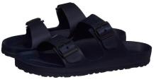 Вентиляционные отверстия в верхней части обуви обеспечивают свободную циркуляцию воздуха, пяточный ремешок фиксирует ступню при ходьбе, внутренняя поверхность подошвы обеспечивает анатомическую поддержку стопы и массажный эффект для еще большего комфорта.