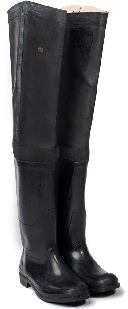Верх сапог выполнен из гладкой черной нелакированной резины, внутренняя текстильная подкладка – из трикотажной хлопчатобумажной трубки ластичного переплетения.