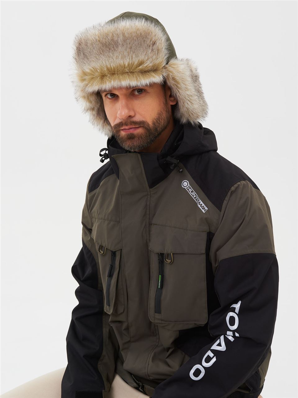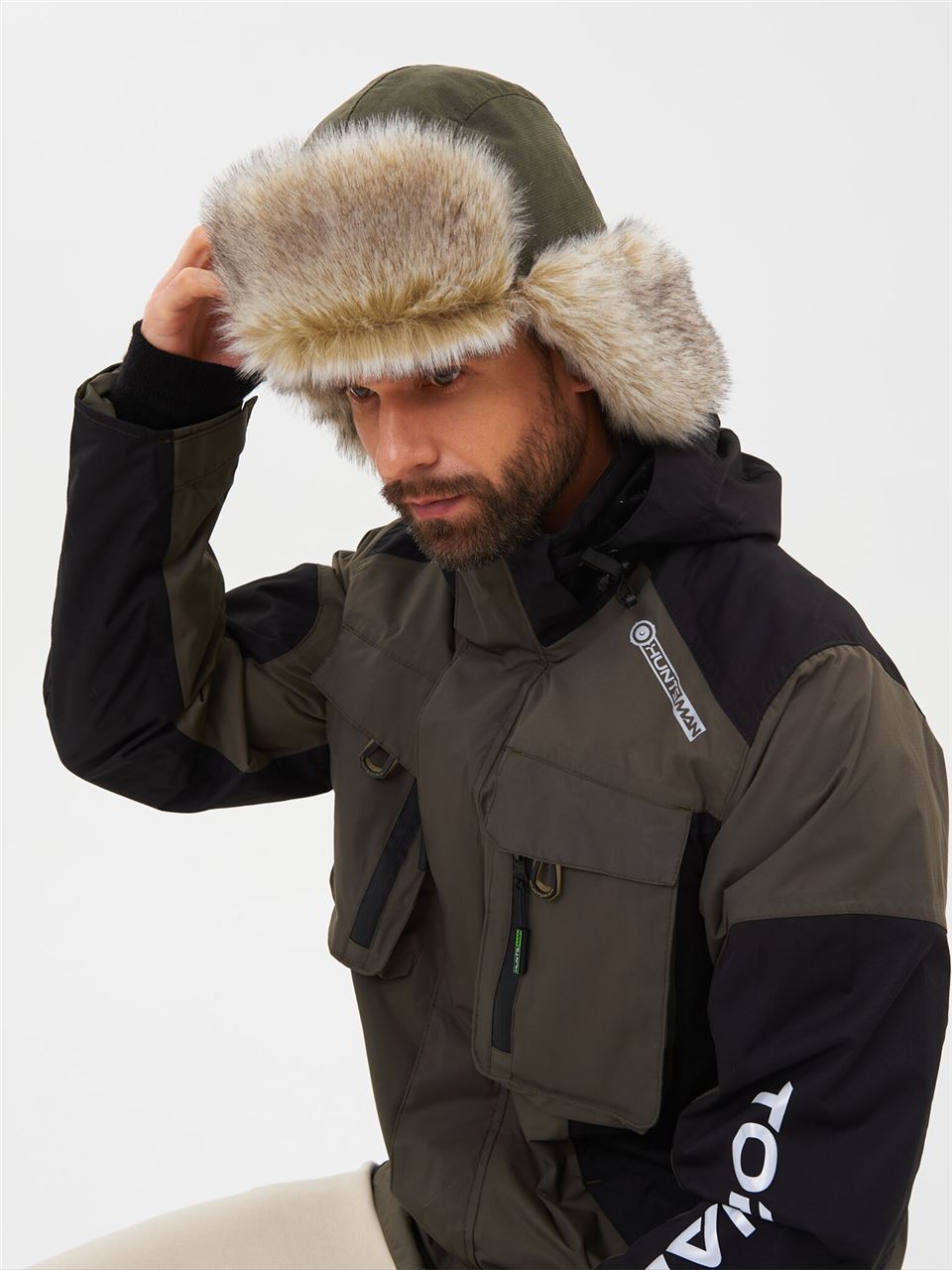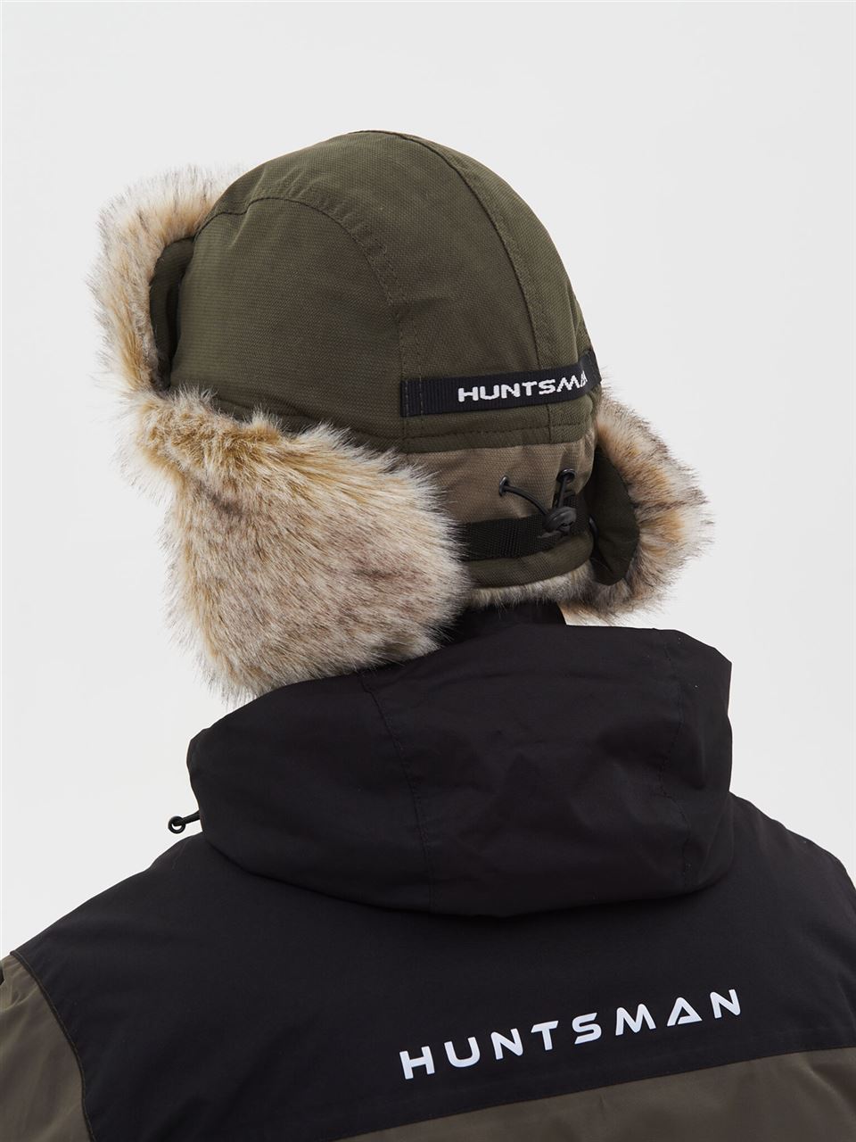 Теплая зимняя шапка-ушанка Huntsman для рыбалки, охоты и активного отдыха с искусственным мехом отличный выбор шапки для любителей рыбалки, охоты и активного отдыха на природе.