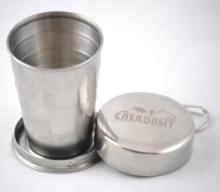 Складной стакан «Следопыт» объёмом 150 мл — небольшой походный стакан, изготовленный из нержавеющей стали и оснащенный удобным карабином на крышке. С помощью карабина стакан можно пристегнуть к рюкзаку или ремню.