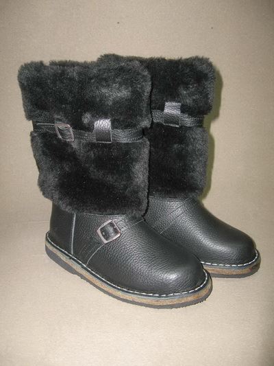 Изготовлены из натуральной кожи, голяшка комбинированная из овчины и искусственного меха, подошва клее-прошивная с войлочным утеплителем.