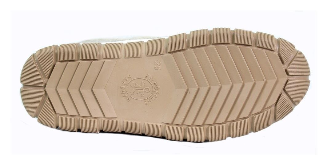 Валяная обувь на подошве из термопласта имеет дополнительные преимущества: она не промокает при сырой погоде. Подошва крепиться к готовому валенку клеевопрошивным методом. Таким образом, валенки на подошве сохраняют и свои теплозащитные свойства.